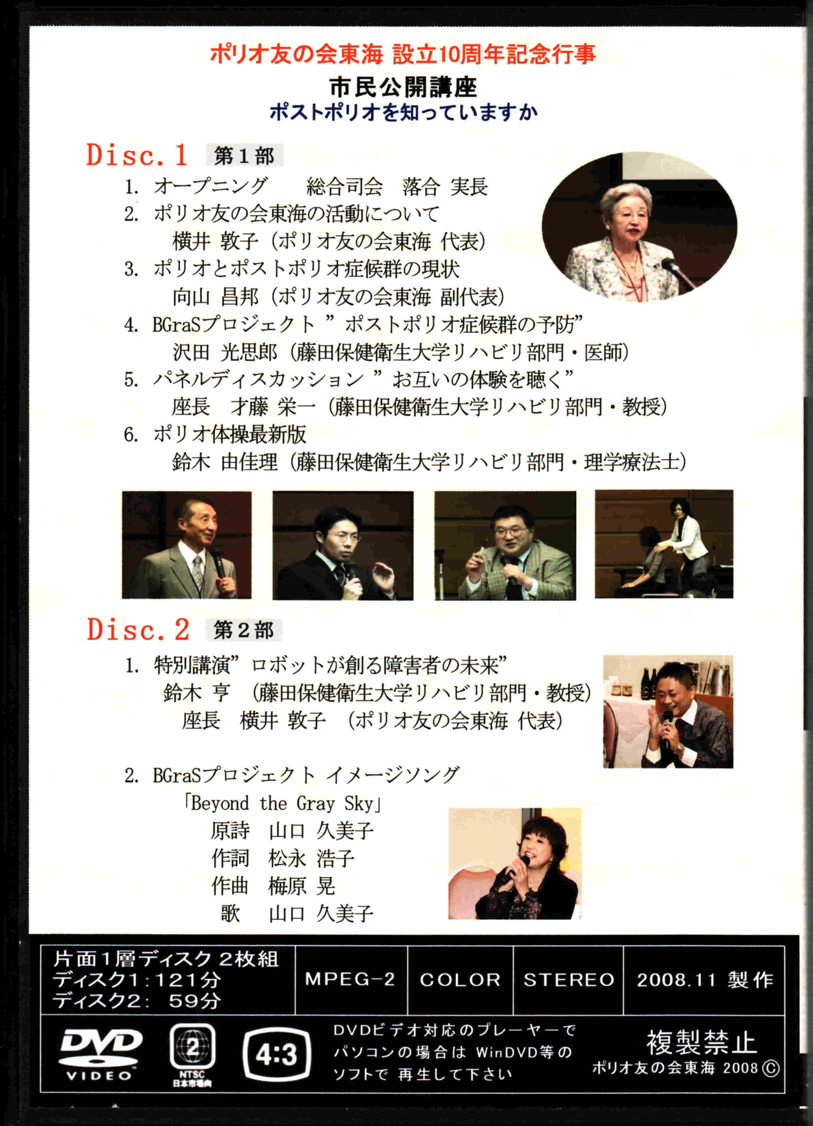 | 当日の模様を収録したDVD(2枚1組)が出来ました。 若干数在庫あります ご希望の方に1000円でお送りいたします。 数に限りがありますのでお早めにお申込み下さい。 |