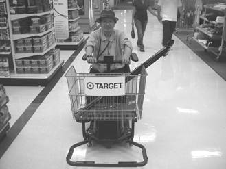 そんな中で日本では、まず出来ないであろう思われる経験をしました。それは、観光ガイドの方の勧めで、現地のスーパーマーケットでショッピングを体験する、と言うことでした。お店は「TARGET」と称する日用雑貨を揃えたホームセンターと食料品関係の店舗を併設する市内でも規模の大きいショッピングセンターでした。私は、そこでスクーター(電動車椅子型)に乗って、買い物を体験しました。操作はいたって簡単で、手元のスイッチを上下に動かすだけで前後に異動できる安定した乗り物です。店内の通路は幅広く、棚の品物も座ったままで殆どが手に届く位置にありました。利用者が不便さを感じないように配慮がなされていることも知りました。私は、欲しい品を探すのに広い店内を乗り回した後、歯磨き用クリーム一個5ドル40セントを払ってレジを通過しました。(歯磨き等に関する用具は、日本のホテルのように常備されていない)